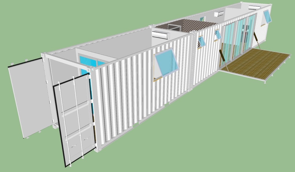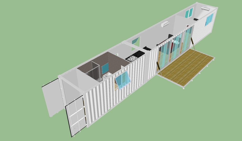 Two containers are joined to create this beautiful spacious 2 bedroom unit.